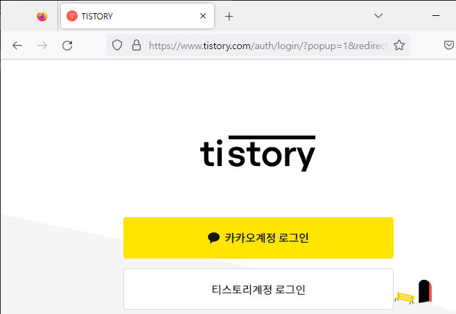 후 에 티스토리로긴 클릭 로그인이 안되어 있을때는 로그인을 먼저 요청합니다.