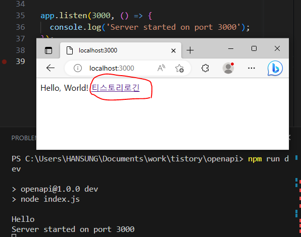 인증 요청을 위한 간단한 express 사용 프로젝트 생성을 위해 vscode에서 node 프로젝트 생성 및 실행까지 완료했습니다. 이제 인증 요청을 위한 페이지 작성을 진행해보도록 하겠습니다.